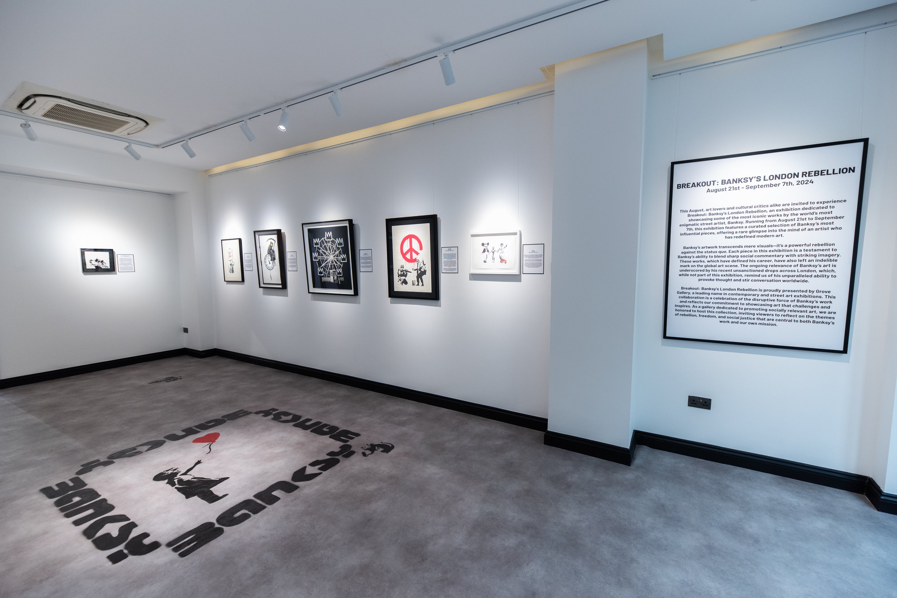 Grove Gallery proudly presented Breakout: Banksy’s London Rebellion, an exhibition that ran from August 21 to September 7, 2024. This two-week event celebrated the profound impact Banksy has had on both the street art scene and the broader art world, offering viewers a rare opportunity to engage with some of his most iconic works.